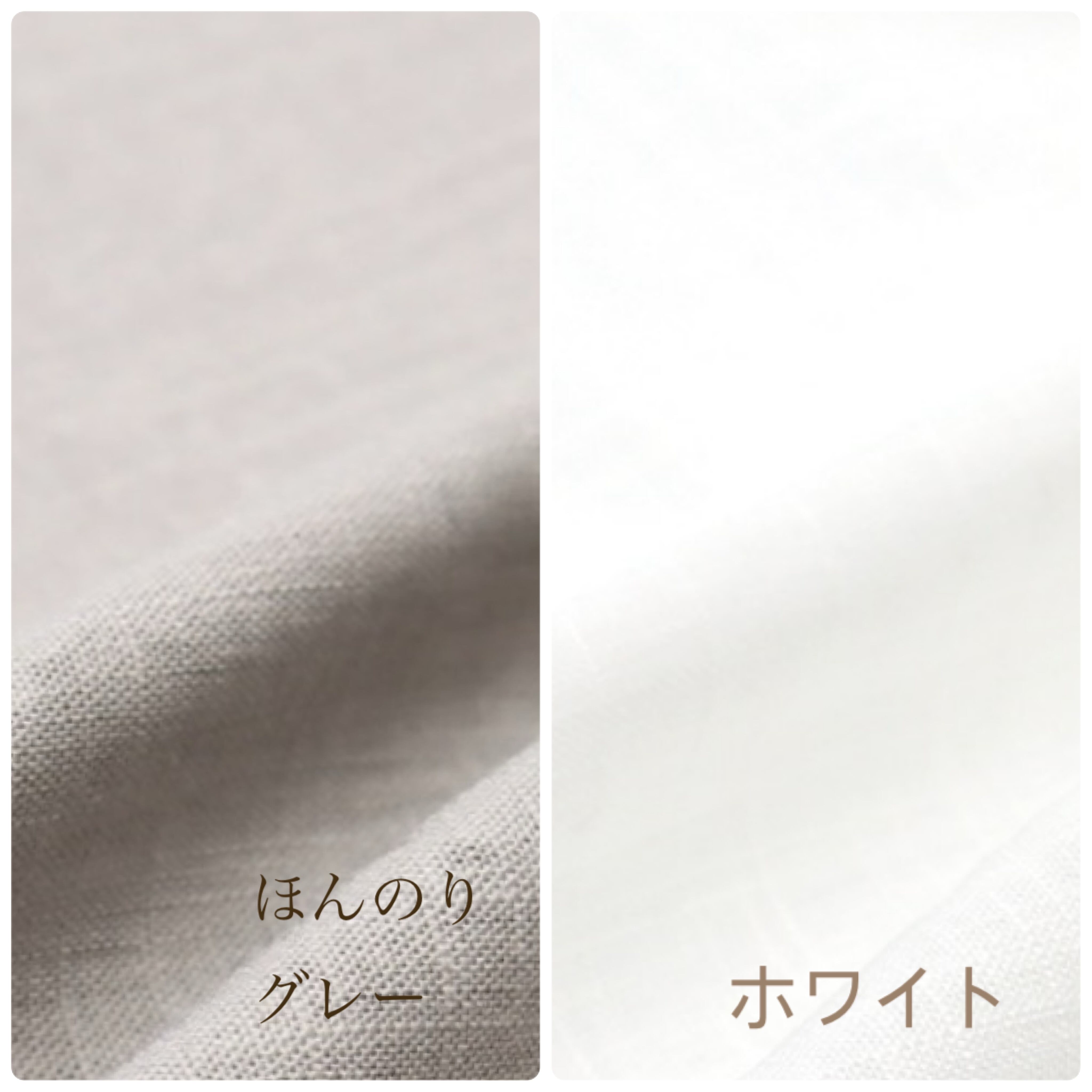 今回のベースはホワイトのリネンブレンド生地とほんのりグレーのリネンブレンド生地をご用意いたしました!
