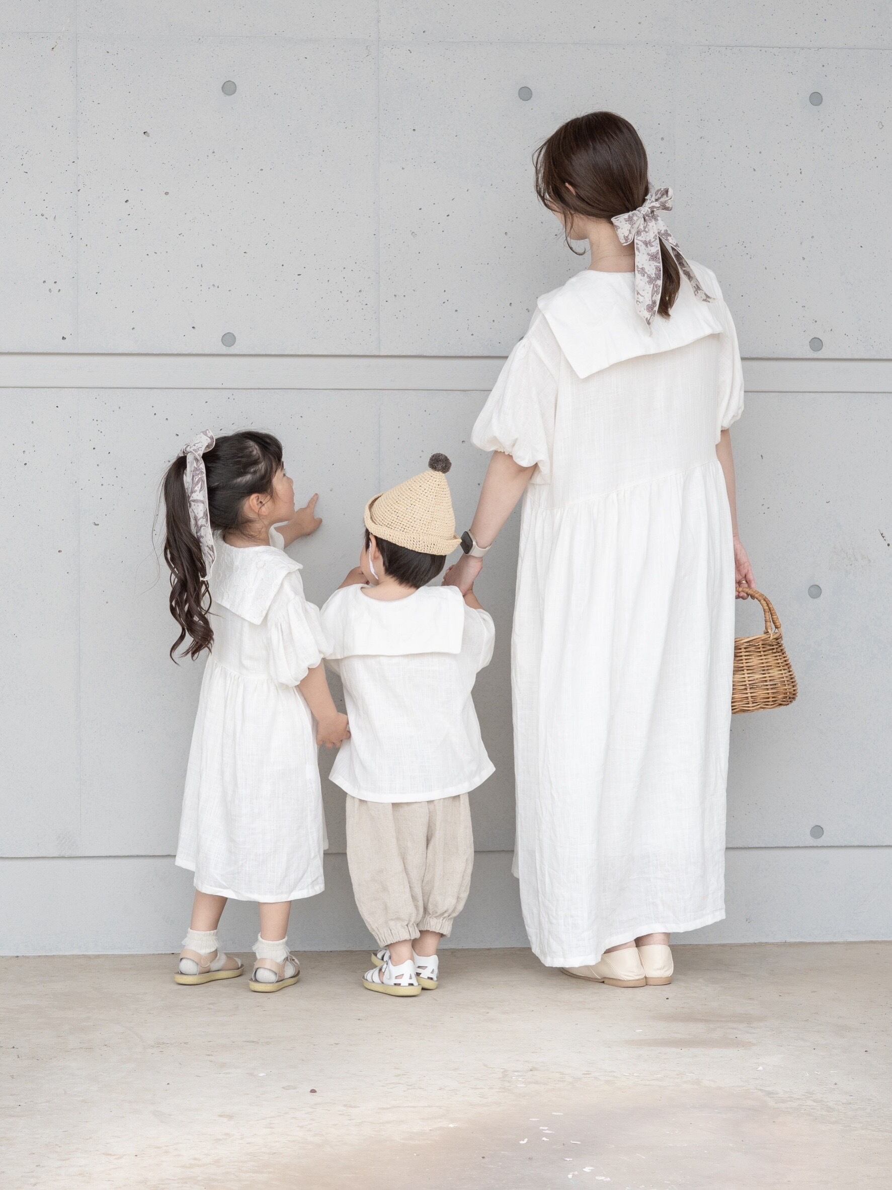 セーラー襟も同色のホワイトリネンなので甘くなりすぎないです。