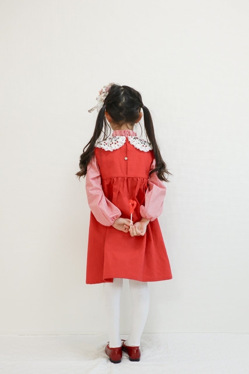 細かい赤のギンガムチェックなのでワンピースとの合わせも可愛いです。